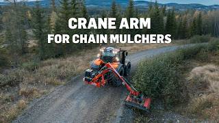 Tokvam's crane arm for chain mulchers, AT 500 R is a arm solution for flexibel use and is well-suited for cutting around field edges, forest roads, also in the height, and cutting on major roads.