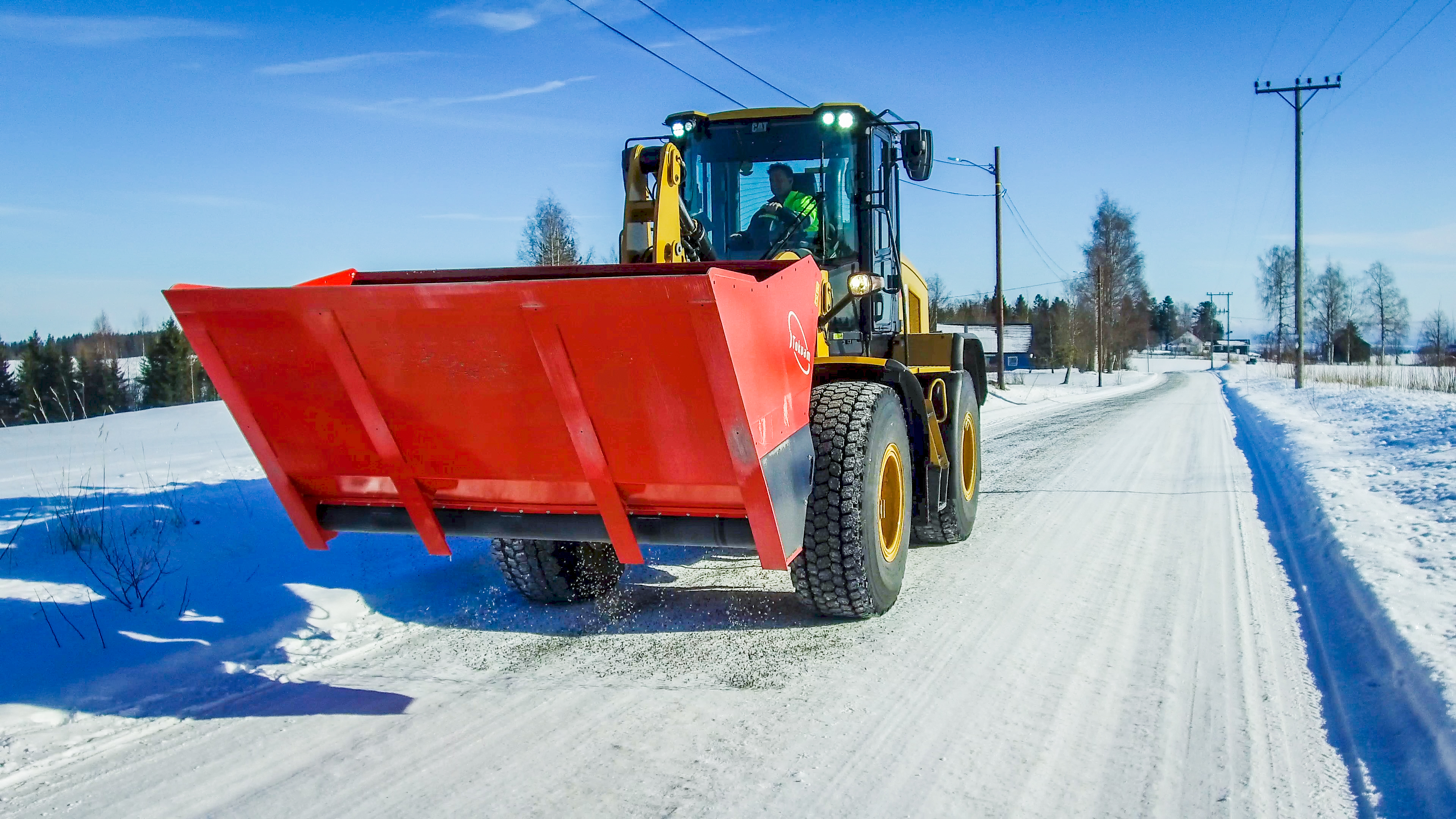 Tokvam SMA 2400 is a large self-loading spreader with hydraulic operation, built based on the bucket principle. This is the spreader with the largest container volume and longest spreading length. The container volume of the SMA 2400 is 2400 liters or 3000 liters with extension frame (optional equipment) and the working width is 240 cm.